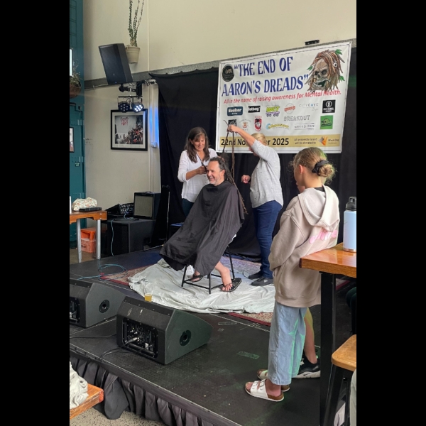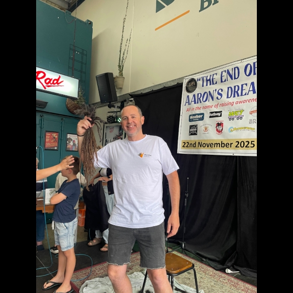 The chop itself will be a fundraiser event on the 22nd of November at Seeker Brewing. Copy the link into your browser and head to the Facebook event page: https://facebook.com/events/s/the-end-of-aarons-dreads/699925502395007/
