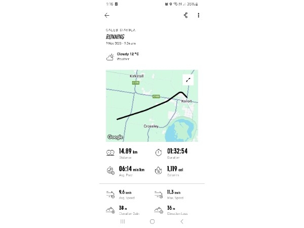 Jarrod joined me for a run 3km warrnambool Sat morning