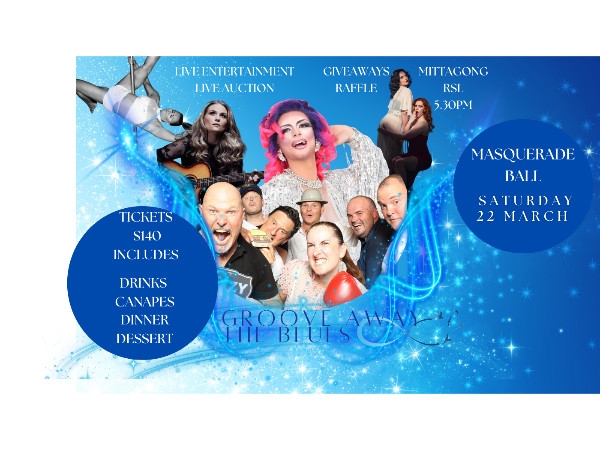 Join us for the 7th Annual Groove Away the Blues Masquerade Ball for suicide prevention on March 22nd at 5:30 PM at Mittagong RSL!